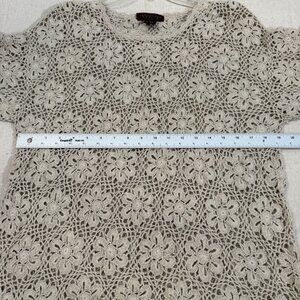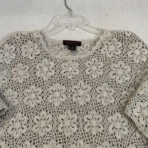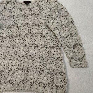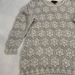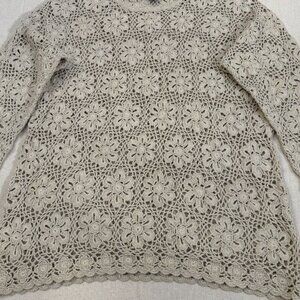 Yarnworks White & Gray Floral Crochet Long Sleeve Sweater Pullover Top L