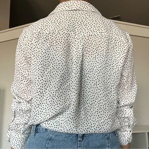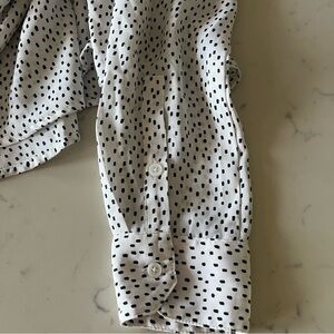 Banana Republic Women’s Oversized White and Black Polka Dot Blouse Size S