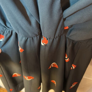 Everly novelty Black Wrap midi Dress with Red fox Pattern size small