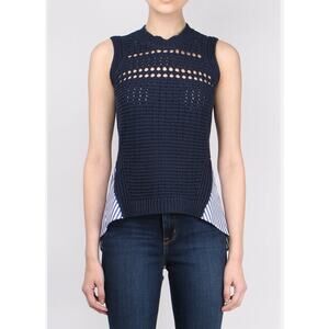Veronica Beard Blue White Par Combo Sleeveless Sweater Size XS South Beach