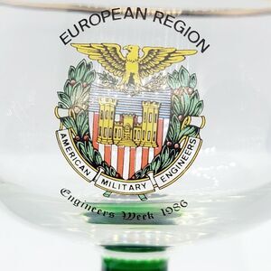 Vtg 2 Wine Glass Goblet Gold Trim Green Swirl Stem Engineers Oberammerg Germany