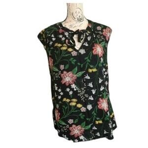 Old Navy Women’s XXL Black Floral Sleeveless Blouse Light & Airy Flowy Bow Neck