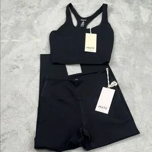 NEW MATE The Label XS Organic Cotton Stretch Black Tank, Midi Cropped Leggings Set