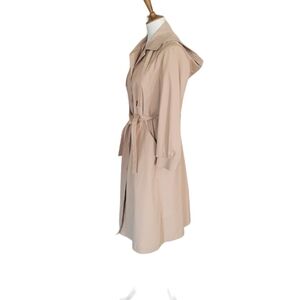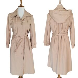 Excellent pre owned condition. London Fog Vintage Khaki Hooded Trench Coat. Sinch waist belt. Collared. Hood. Button front and cuffs. Fully lined. Pit to pit 19" Shoulder to hem 39".