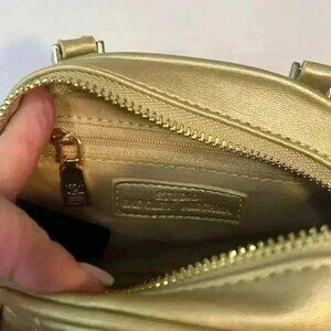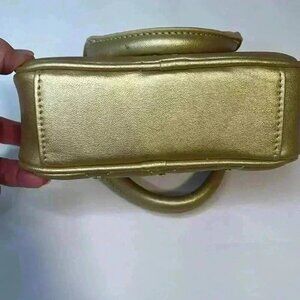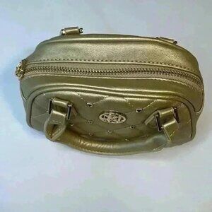 BADGLEY MISCHKA MINI DOME CROSSBODY PURSE QUILTED METALLIC GOLD STUDS