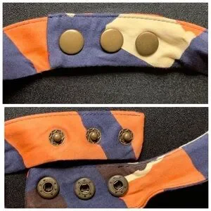 Belt is a webbed material with leather tips. 33” x 1 3/4”