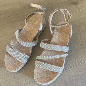 Kelly & Katie Silver Rhinestone Rose Gold Glam Shimmer Summer Sandals 8M