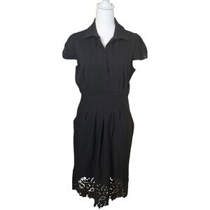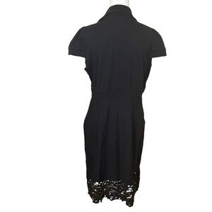 BCBG Maxazria Black Midi Dress Lace Hem Large Office Career Minimalist Neutral