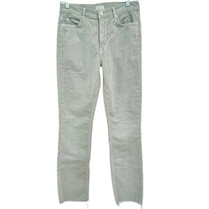 Mother Mid Rise Dazzler Ankle Fray Corduroy Jeans Pants Gray Green 26 Short