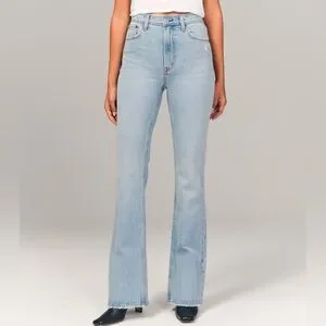 Abercrombie & Fitch High Rise Vintage Flare Jeans Sz 32 Long. Gently used condition with no notable flaws. Slight intentional distressing at seams. Light wash.