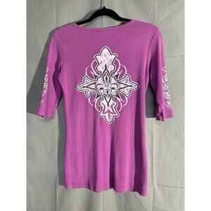 Y2K Vintage Top Womens Large Purple Cross Graphic Cyber Grunge Goth USA
