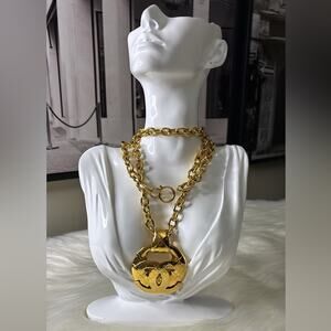Elegant gold chain necklace with a bold pendant, perfect for adding a touch of luxury to any outfit.