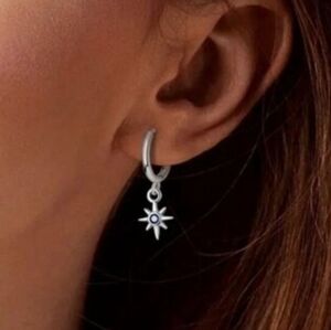 Moon & Star Earrings Sterling Silver Blue Rhinestone Small Hoop earring Trending
