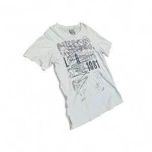 Stylish white tee with bold graphic design. Perfect for casual outings.