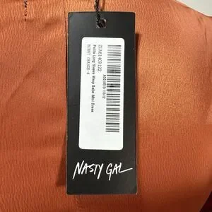 NASTY GAL Burnt Orange Faux Wrap Satin Mini Dress Size 4 Long Sleeve NWT