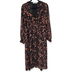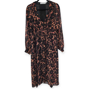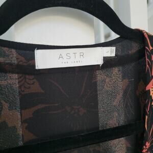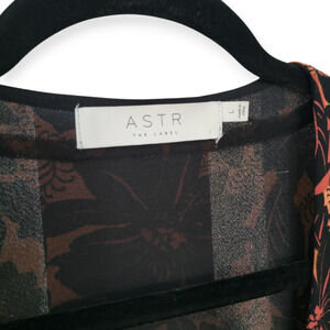 ASTR The Label Floral Smocked V-Neck Long Sleeve Dress Black/Coral Women Sz L
