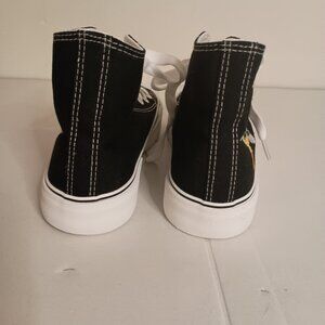 Black Embroidered Crane Bird Nature Scene High Top Sneakers Women’s Size 7 NWT