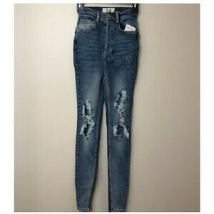 Free People Women's Phoenix High-Rise Ripped Skinny Jeans Navy Size 24, $98 NWT