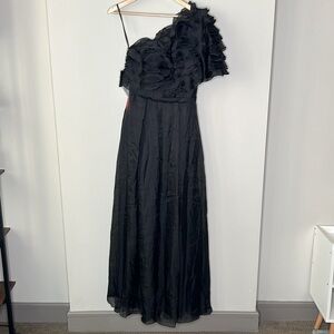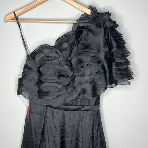 Ieena for Mac Duggal 26527 Ruffle Layered One Shoulder Gown in Black Size 6 NWT!