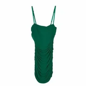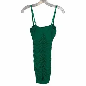 NBD Green Ruched Bodycon Mini Dress XS Double Strap Cowl Neck Party Cocktail