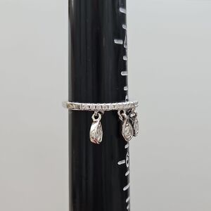 Hannah's Dangling Charm Moissanite Ring. Size 5. WG Plating