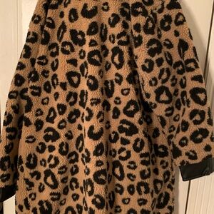 Elevate your style with the Cheetah Teddy Jacket. This brown jacket features a striking cheetah print, perfect for adding a bold touch to your wardrobe.