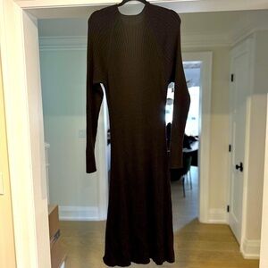 THAKOON Chocolate Brown Long Rib Knit Wool-Blend Dress - Size XL