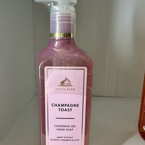Set of three Bath & Body Works hand soaps. Includes Champagne Toast, Pineapple Mango, and Strawberry Pound Cake. Vibrant scents for a refreshing cleanse.