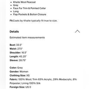 KHAITE “Finna” Sophisticated Coat with Removable Faux Fur Collar - size 0 - NWT