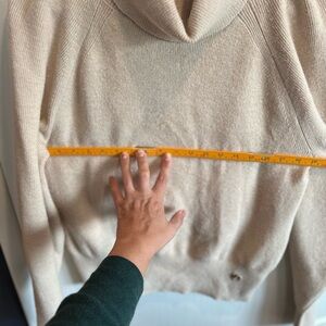 Elegant beige sweater with a stylish cowl neck. Perfect for layering and versatile wear.