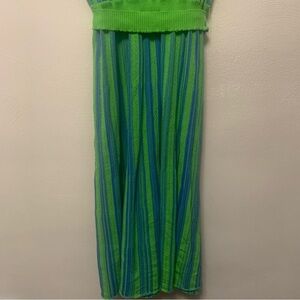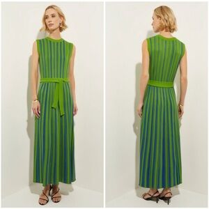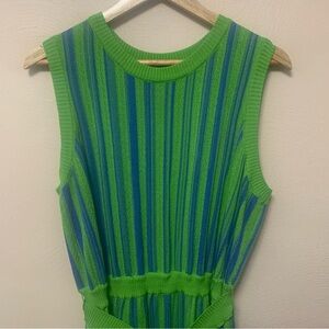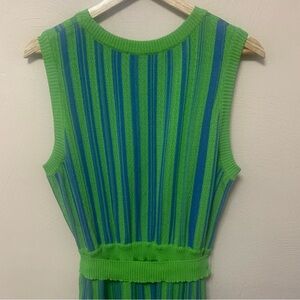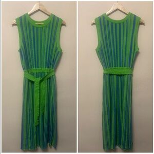 Misook Sleeveless Soft Ribbed Knit Belted Maxi Dress Green Blue Striped Size XL