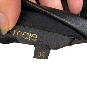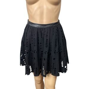 MAJE Black Pleated Perforated Laser Cut Leather Trim Mini Skirt SZ XS