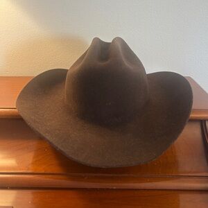Vintage Cuatrero deep brown western hat with silky interior, see photos for tears, otherwise in excellent preowned condition.