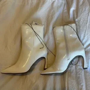 Express Shiny White/Cream Heeled Boots