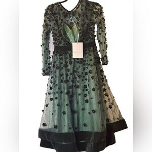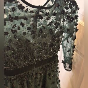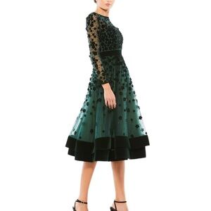 NWT Mac Duggal Emerald floral appliqué Embellished Illusion Long Sleeve Fit& Flare women’s dress size 4.