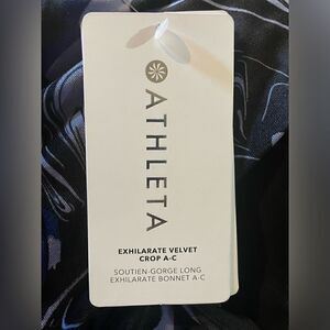 Athleta Exhilarate Workout Velvet Crop Top A-C Size Small Blue/Black NWT $79