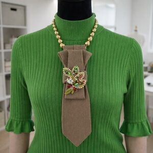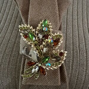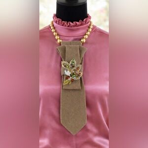 OOAK Handcrafted Necktie Necklace with Multi-Colored Stone Brooch & Beaded Chain