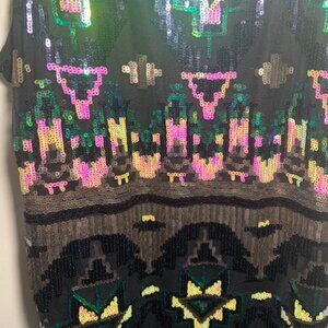 Say What Women Geo Aztec Sequin Y2K New Years Eve Party Sparkle Top - Size M