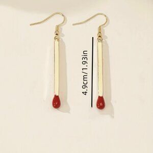 Gold Matchstick Minimalist Trendy Streetwear Dangle Earrings NEW