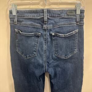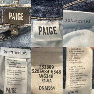 Paige Colette Mid-Rise Crop Flare Jeans Palma Dark Blue Asym Fray Hem Boho Sz 29