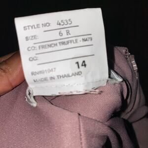 Dessy Group Bateau Neck Open Cowl Back Trumpet Gown in French Truffle Size 6R