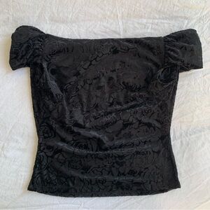 NWT Reformation Cello Knit Off Shoulder Floral Blouse Top Black Rose Velvet