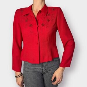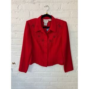 90s Karin Stevens Petites Red Jacket Top Size M
