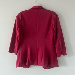 Red knit blazer with open front and 3/4 sleeves. Super wrinkle resistant. Never worn, in excellent condition.