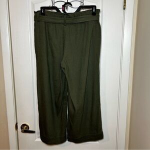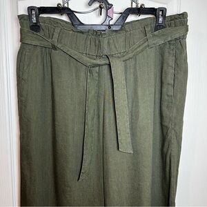 J.Jill Olive Green Linen Blend Wide Leg Paperbag Waist Tie Detail Pants Size L