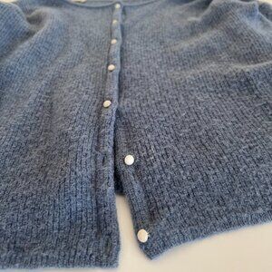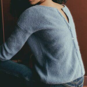 Sezane's popular cardigan, can be worn with buttons in the front or back. i love this "vintage blue" color.
