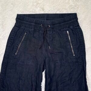 Athleta Cabo Linen Wide Leg Pant Black Size 4 Elastic Waist Zip Pockets
