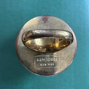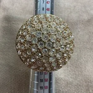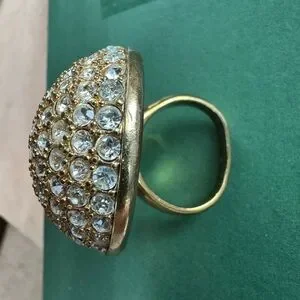 This stunning Kate Spade cocktail ring features a dazzling array of clear rhinestones with gold tone metals. Tonal wear on edges-see photos for reference. See mainly when not worn on the back.