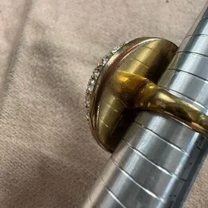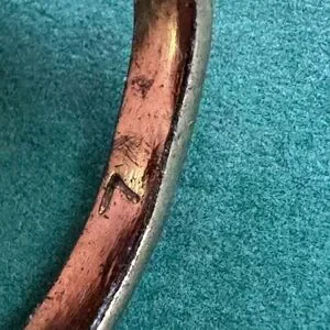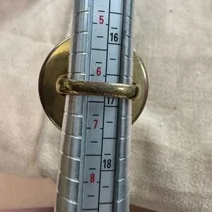 Sits at about 6 1/4 on sizer due to ring being warped during wear. Size 7 marked on inside.