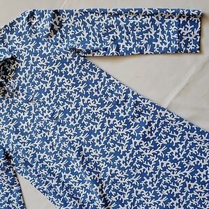 This elegant long sleeve dress features a striking blue and white pattern, perfect for any occasion. Enjoy a blend of style and comfort with its classic design.